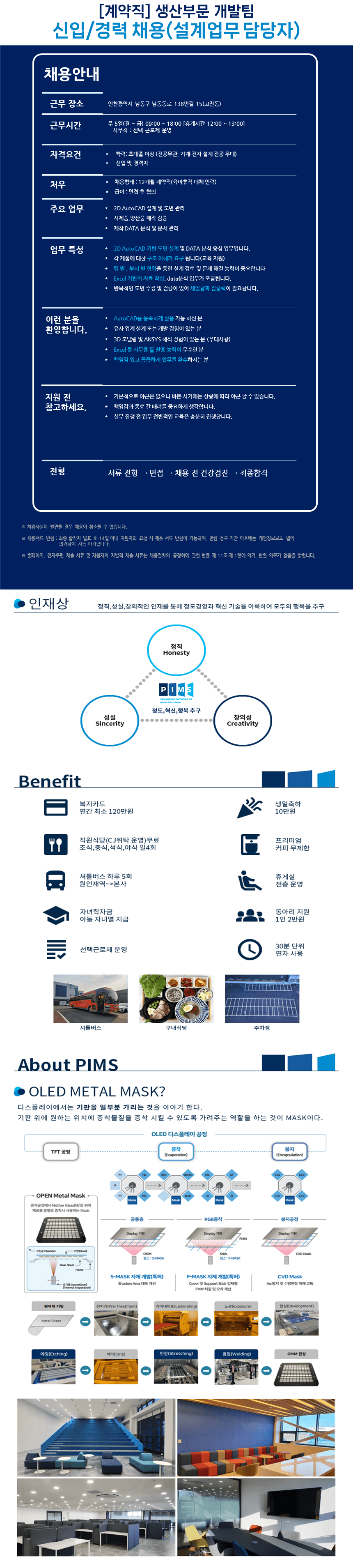 [계약직] 생산부문 개발팀 채용(경력무관, 육아휴직 대체)