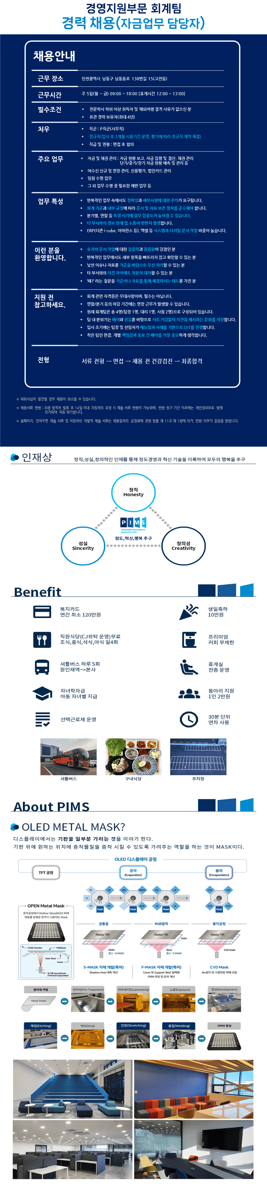 경영지원부문 회계팀 경력 채용(자금업무 담당자)